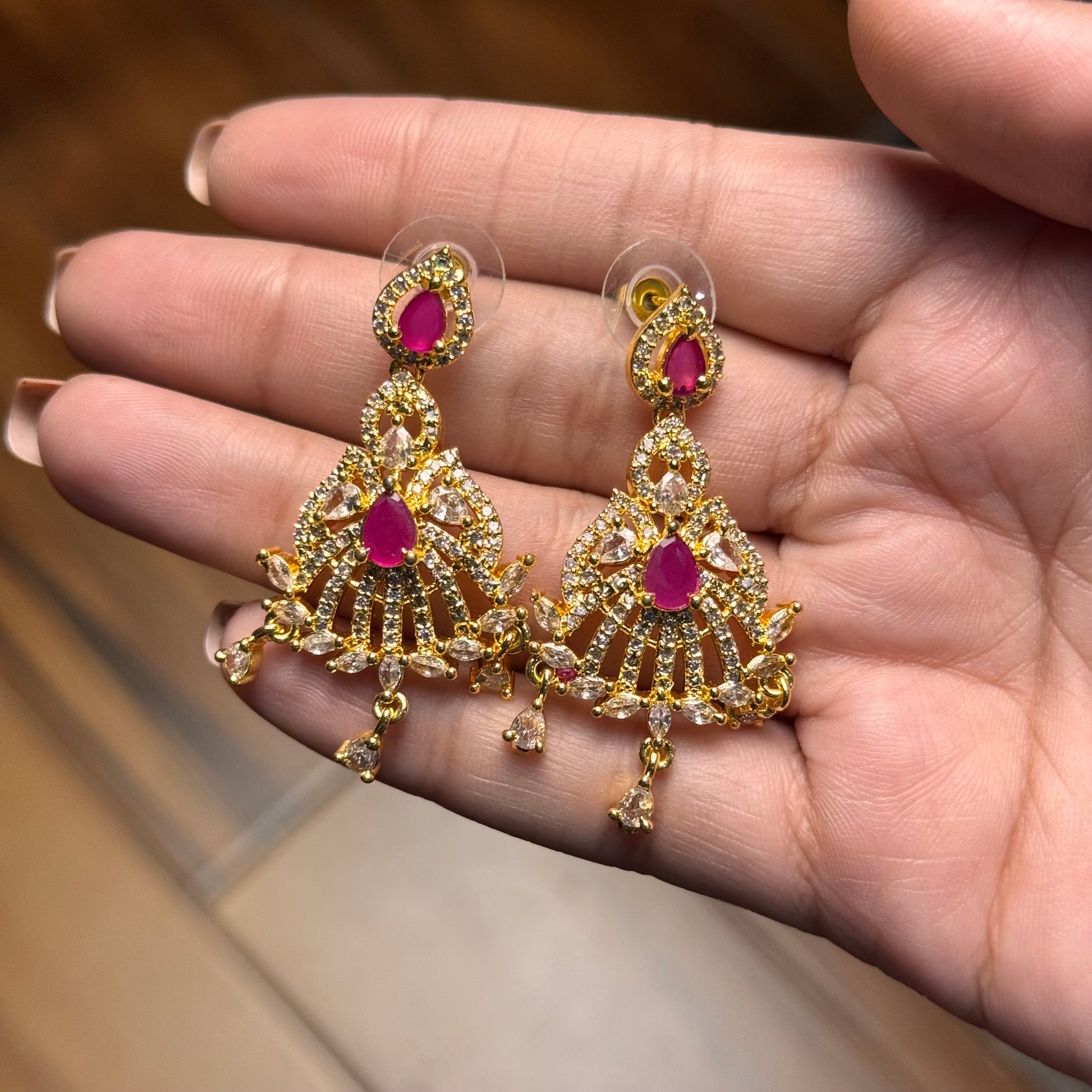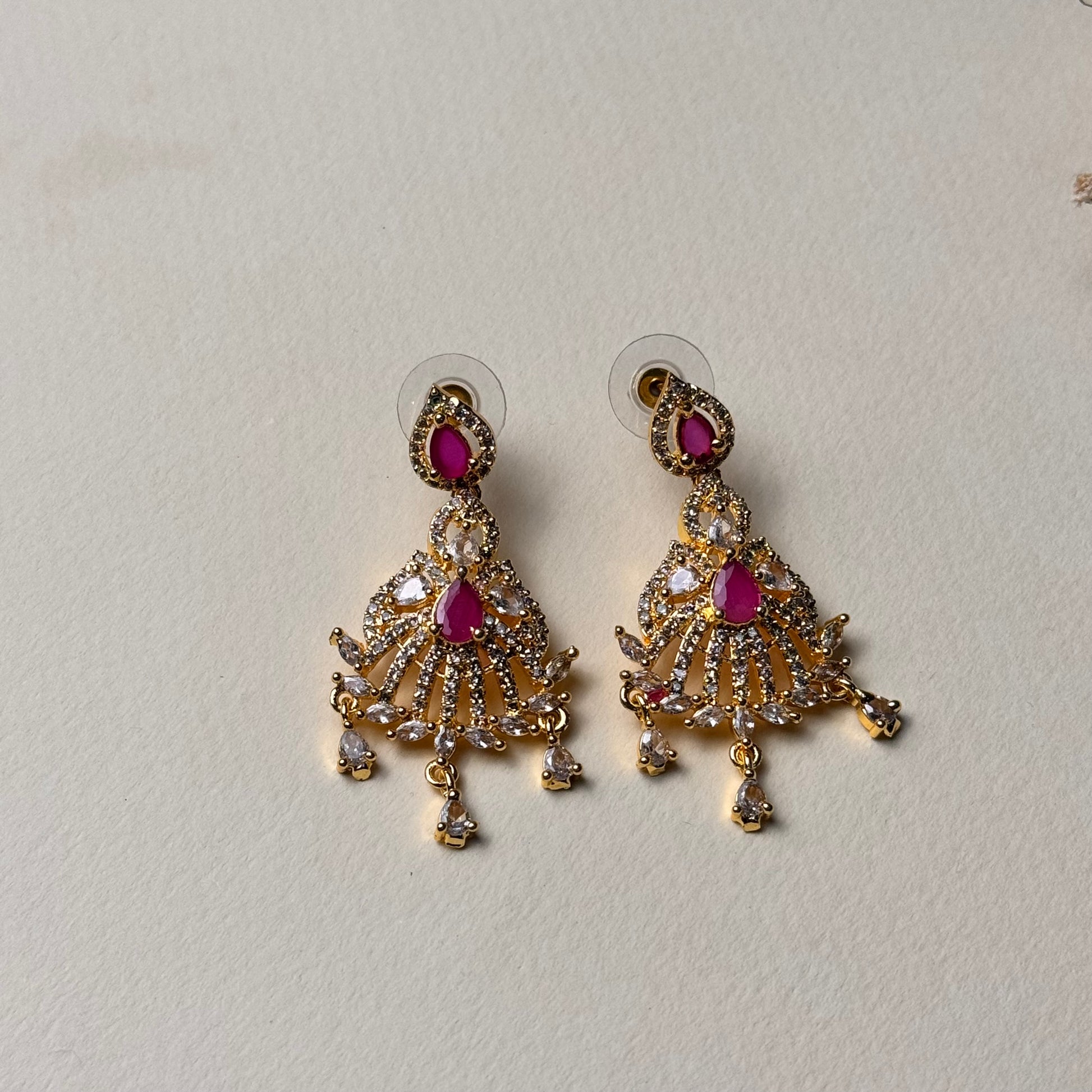 Where tradition meets modern glamour — radiant crystals, a fresh radiant stone, and an elegant drop crafted in a refined gold finish.