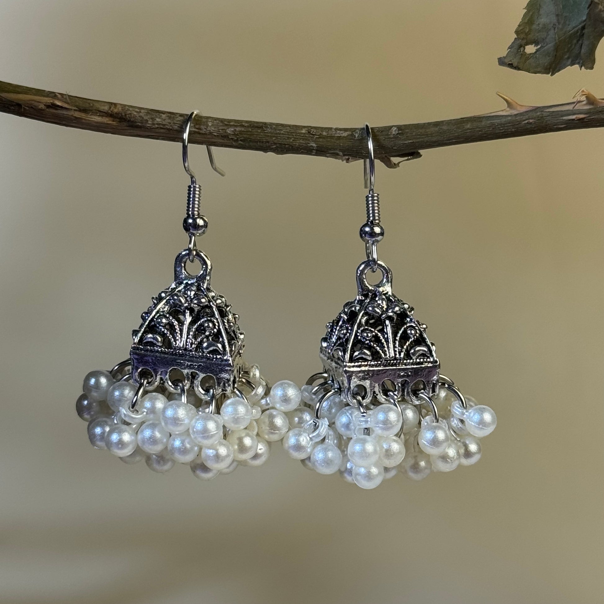Regal silver jhumkay crafted for women who carry tradition like a crown.