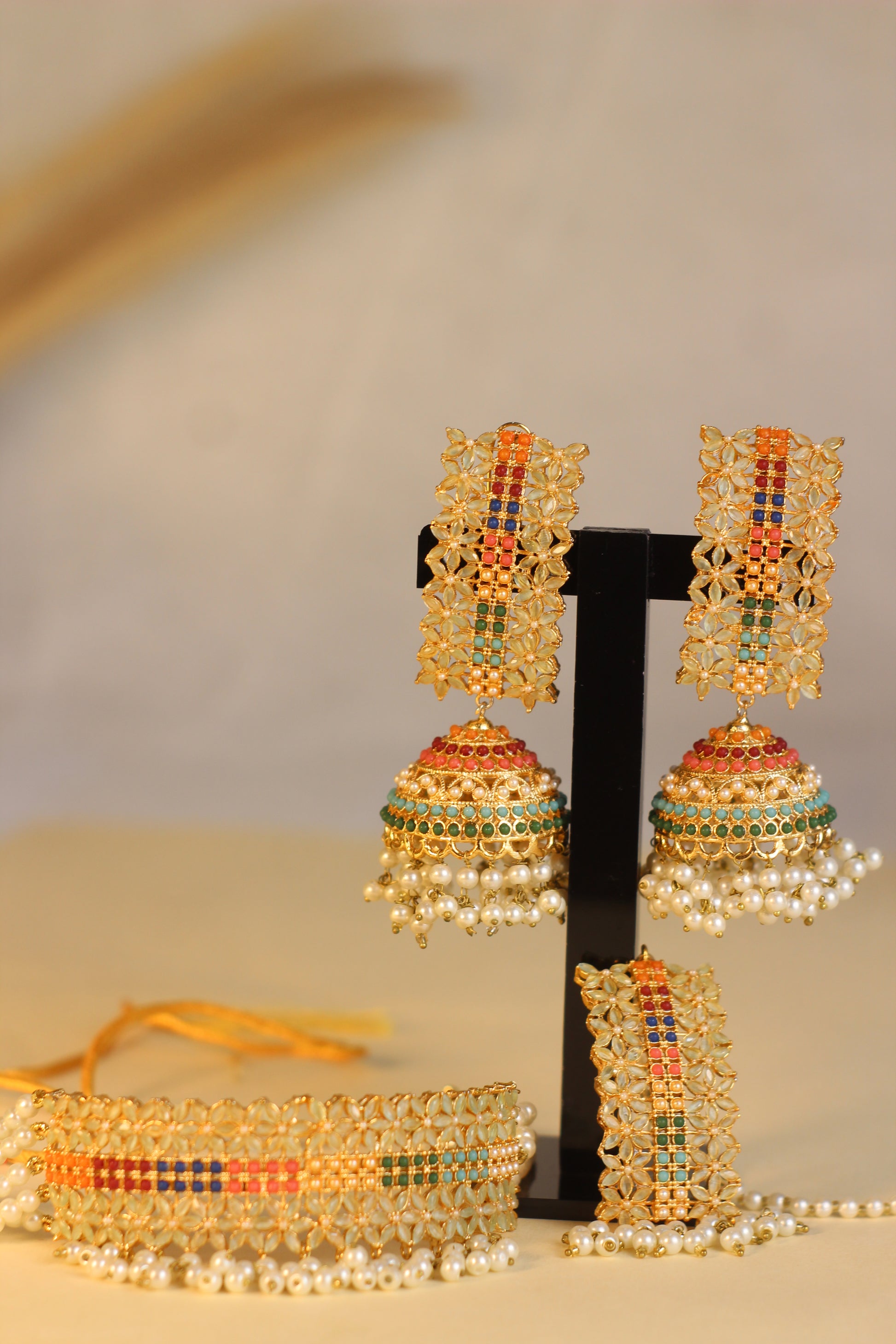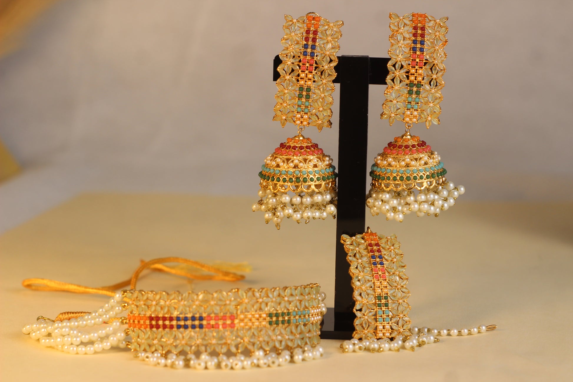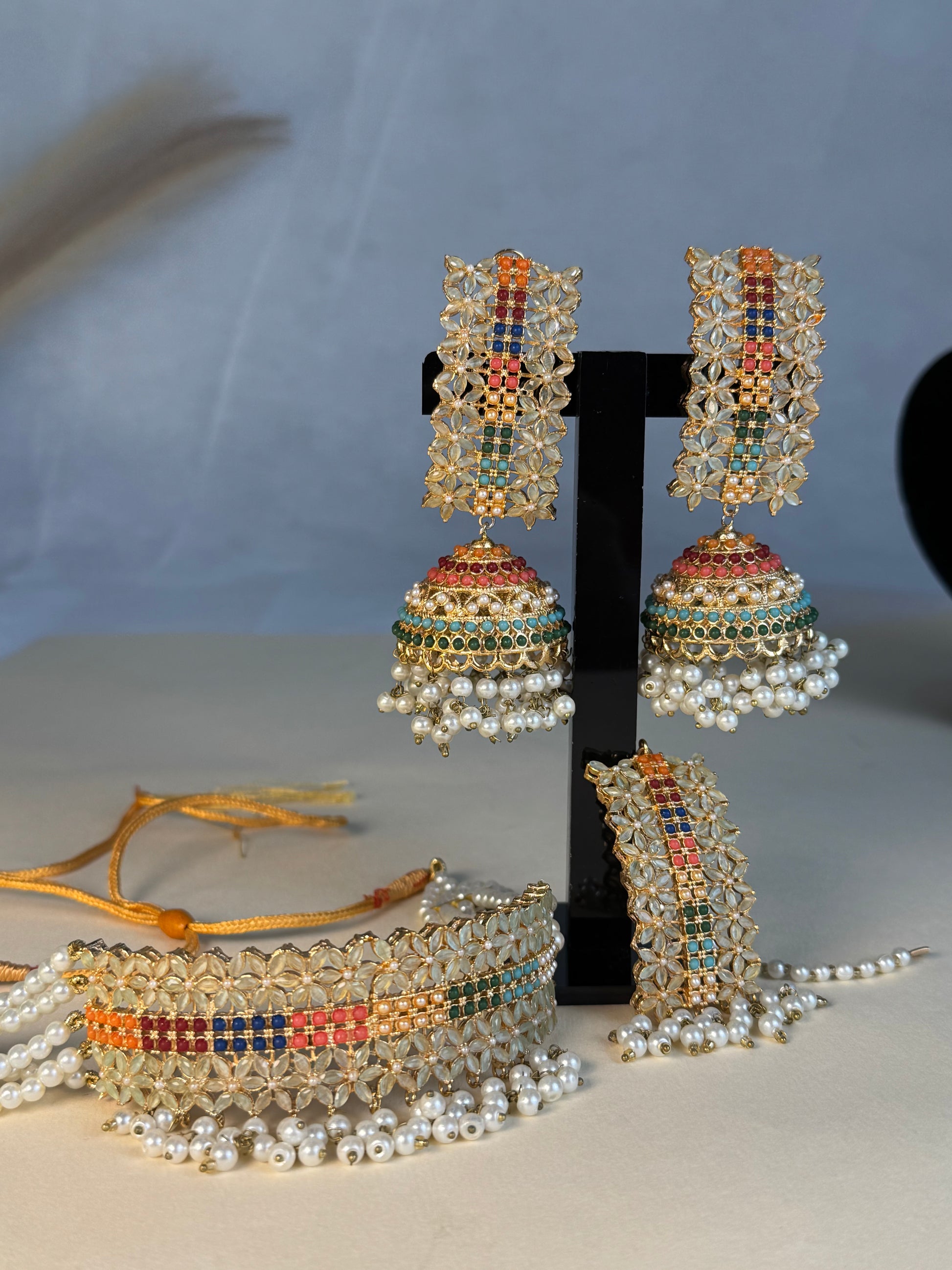 - Includes choker, earrings and tikka