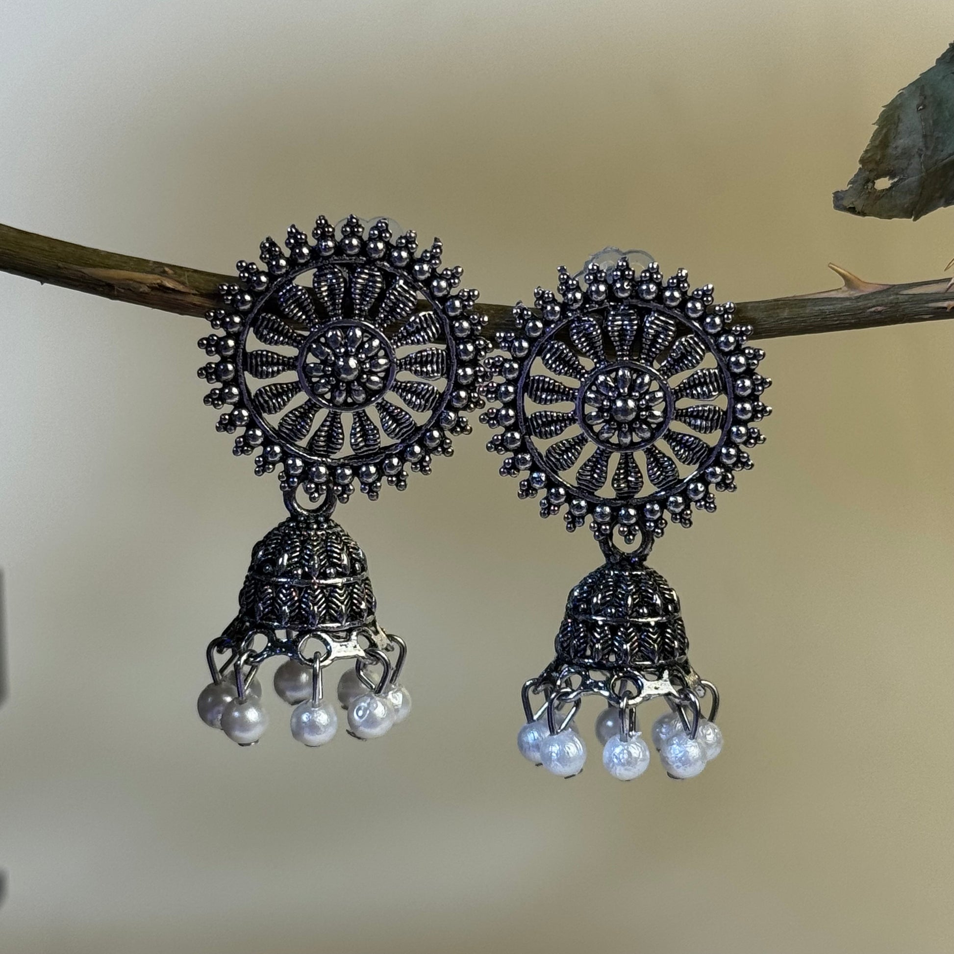 Bold silver jhumkay inspired by wedding melodies and royal celebrations.
