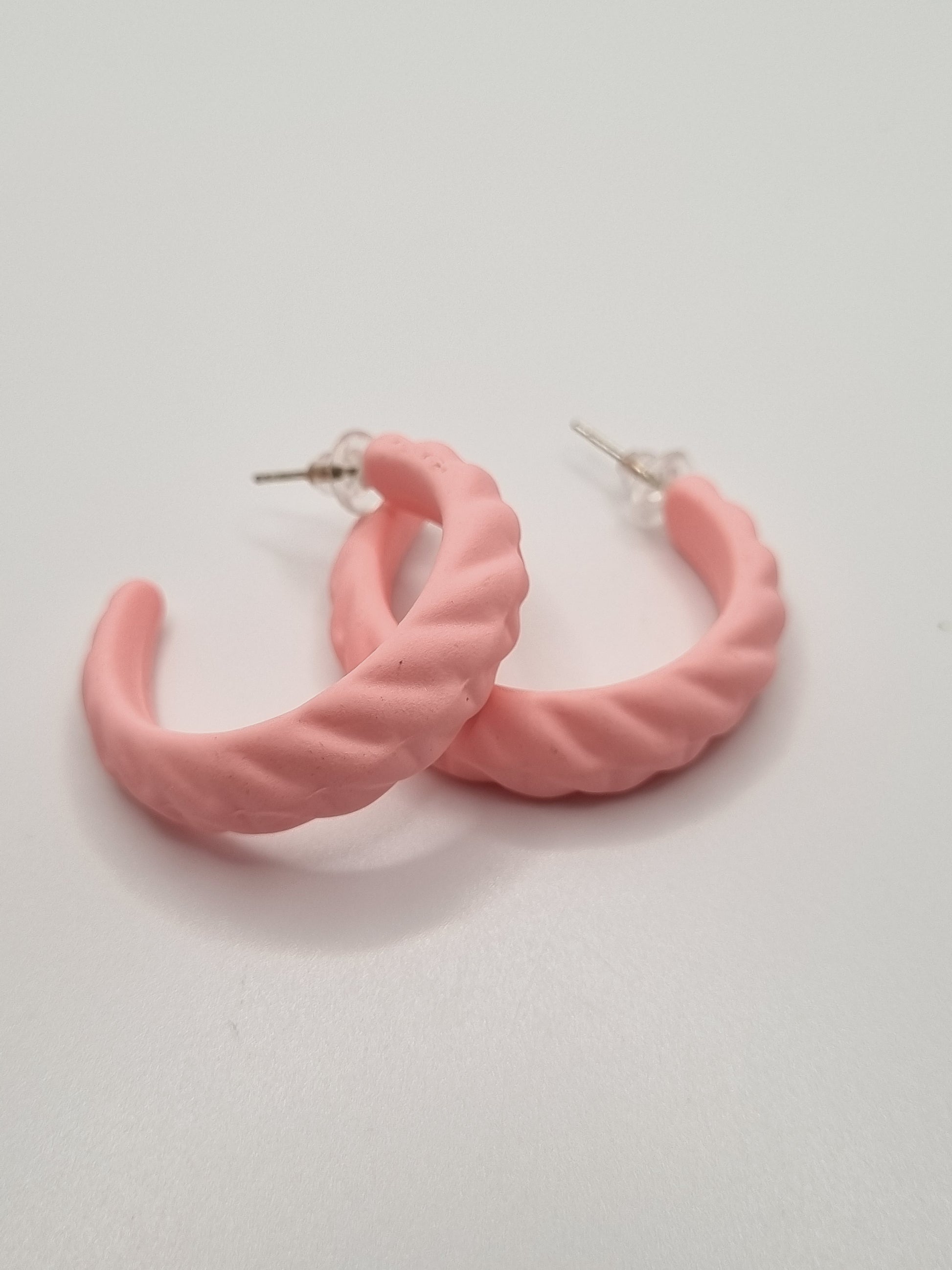 Velvety textured hoops that gently twist for a soft luxe finish.